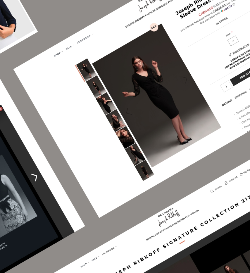 DeCabana came to our team for a new website design, an online store powered by a premium E-Commerce platform, conversion optimization, and a digital marketing strategy. We provided them with a modern and trendy design that displays an image of luxury and matches the quality of the high-end Joseph Ribkoff products DeCabana offers. Their new website is powered by industry-leading E-Commerce platform Magento, and allows them to perfectly display their selection of high-end clothing. Their website was heavily customized to sell their products in different currencies, to various countries around the world, abiding by diverse tax and shipping rules and more. We helped maximize DeCabana’s sales with a thorough and comprehensive conversion optimization strategy. Our team also helped them with a digital marketing campaign to help get their brand to the right people and get their websites the best results possible.