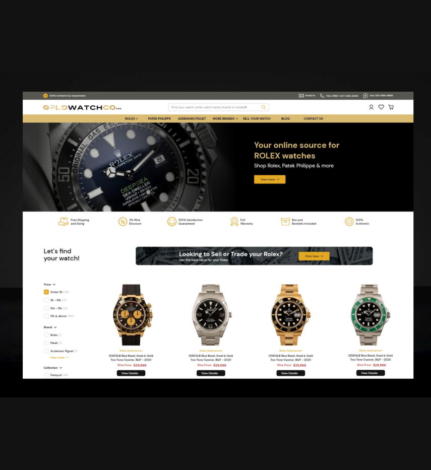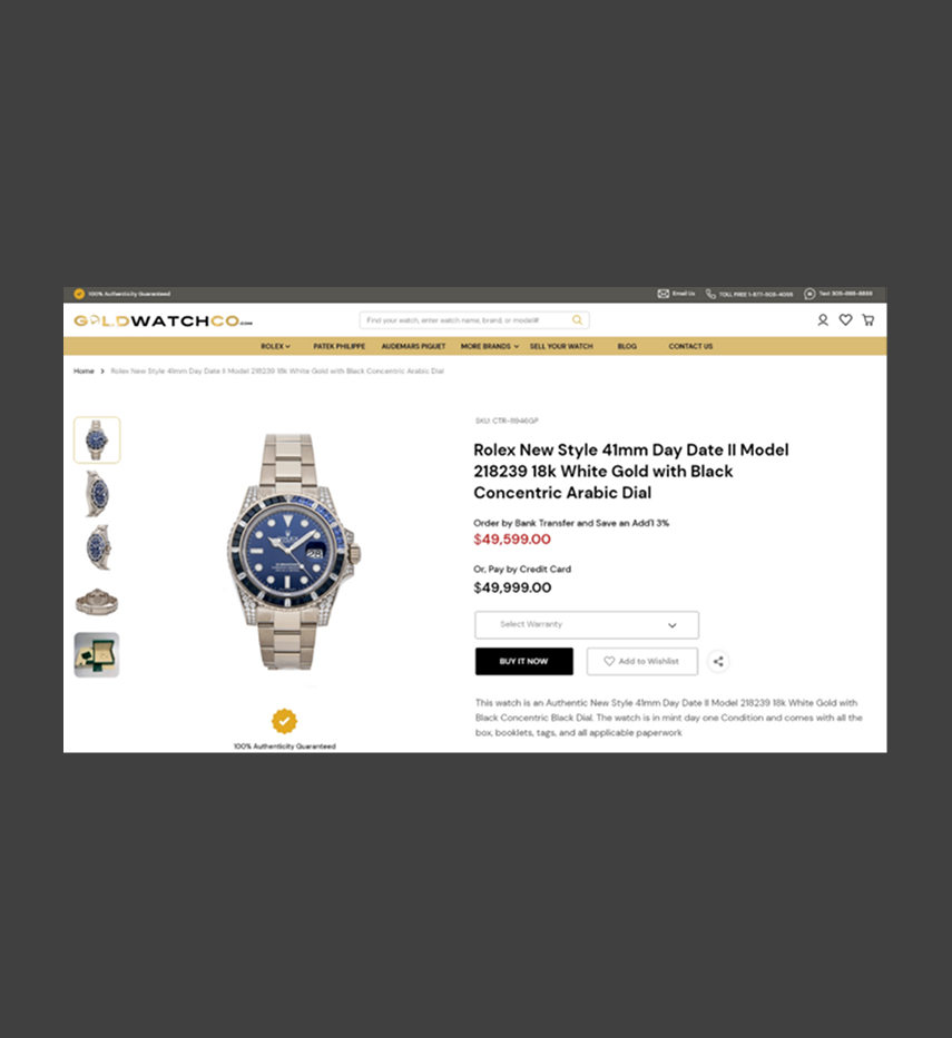 For over a decade, GoldWatchCo has been a trusted and safe online source of high-end luxury watches including well known brands such as Rolex, Patek Philippe, and other high-end timepieces. The Miami based company has built a vast network of suppliers, clientele, and wholesalers, giving them the opportunity to provide their customers unique savings and the convenience of securely buying high-end luxury Rolex watches online.